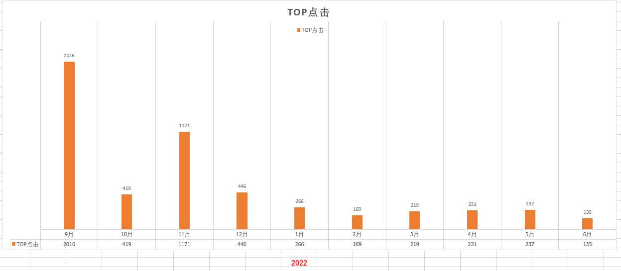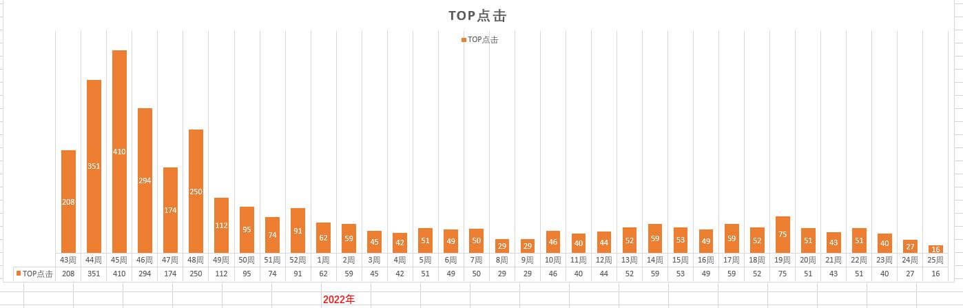 长达10个月的TOP点击数据,看图中数据波动非常明显,关键词点击量下滑这么多,有排名,烧P4P都没什么作用,没有搜索点击需求,哪会有询盘呢。