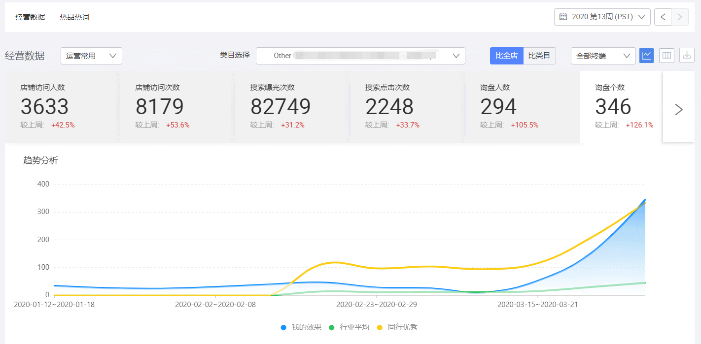 现在操作这个店铺已经长达半个月流量增加,已经走向平稳状态,看来同行优秀TOP是稳住了。大家也不用猜,肯定不是口罩产品。这个店铺在以前的文章中提到过的,具体可以查看:阿里国际站跟着我这样做,询盘月破百不成问题