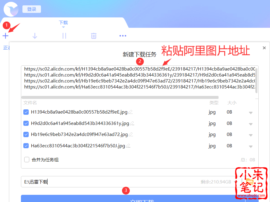 迅雷演示下载:新建下载任何,粘贴阿里图片地址,然后点击下载。