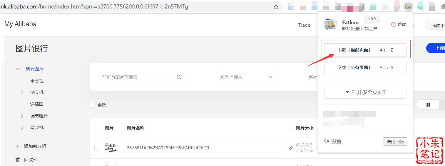 1、打开图片银行,点击Fatkun插件图标,选择下载当前页面