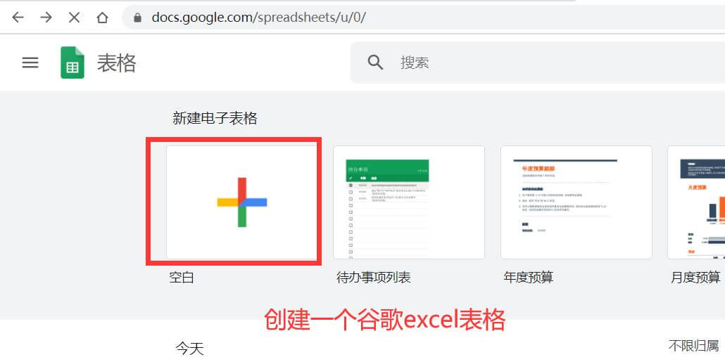 1、打开谷歌表格地址,创建表格。