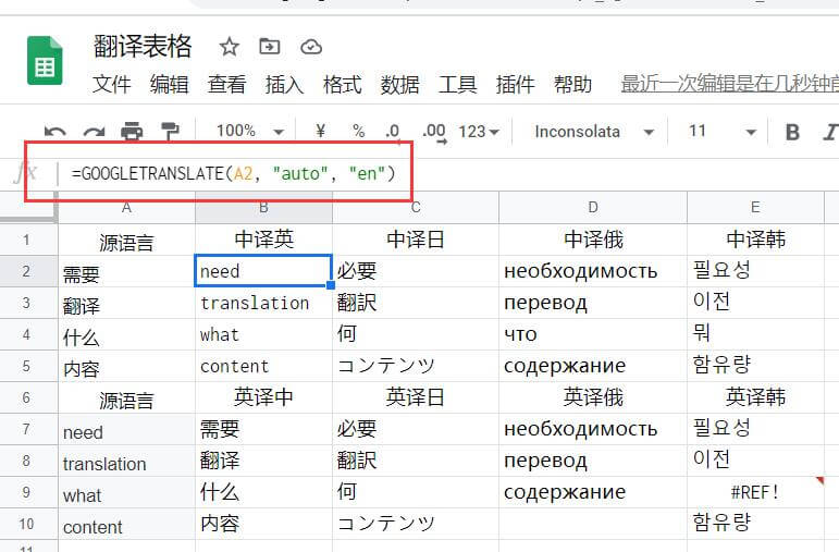 谷歌excel表格批量翻译各国语言
