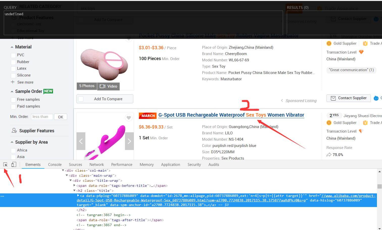 4、在弹出框的左上角,点击一次鼠标的小图标,选择一个产品的标题,进行代码定位。