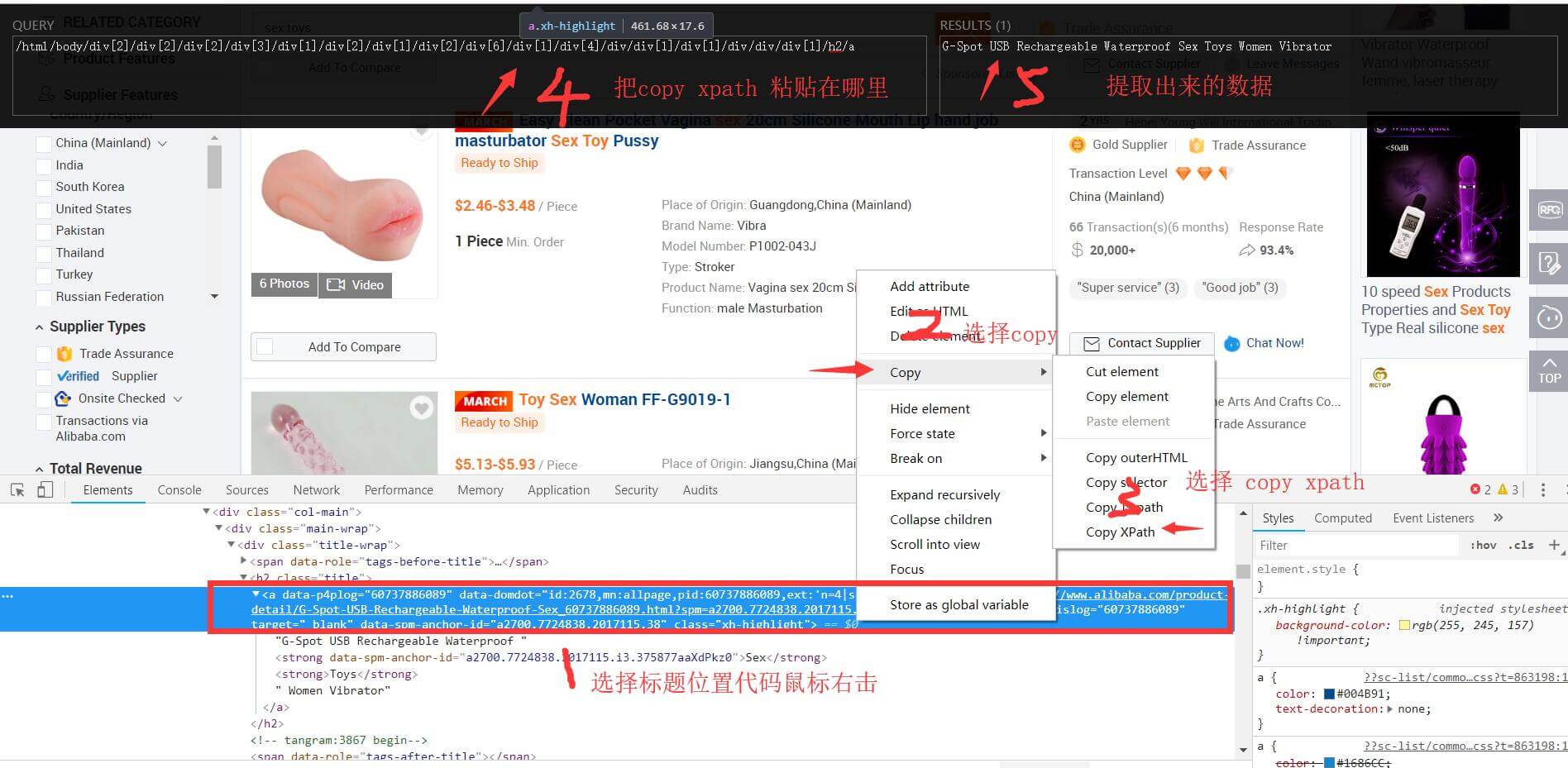 阿里巴巴国际站运营工具利用xpath插件提取关键词或标题