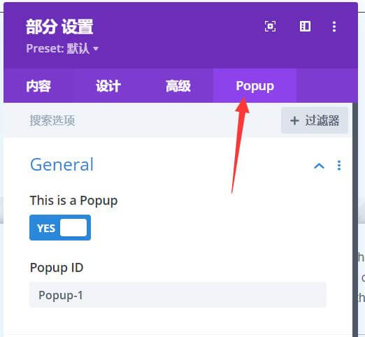 2、启动弹窗设置,可以设置一个ID,用于文字,按钮,链接,触发弹窗。