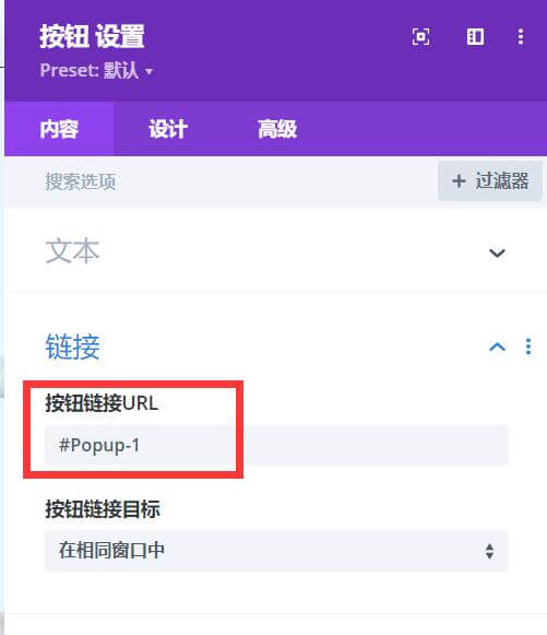 3、例如:在按钮设置好弹窗触发链接。