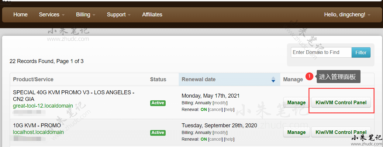 1、点击官网:BandwagonHost 登入搬瓦工,进入管理面板。