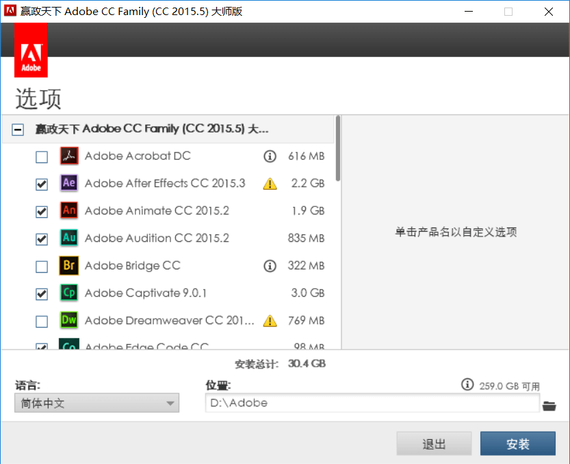 注意事项:如果你电脑已经有安装过Adobe的软件,像Photoshop、Dreamweaver、lllustrator这些,要全部卸载后在安装这个Adobe全家桶提供的软件,否则安装软件时会失败的。