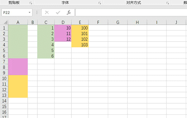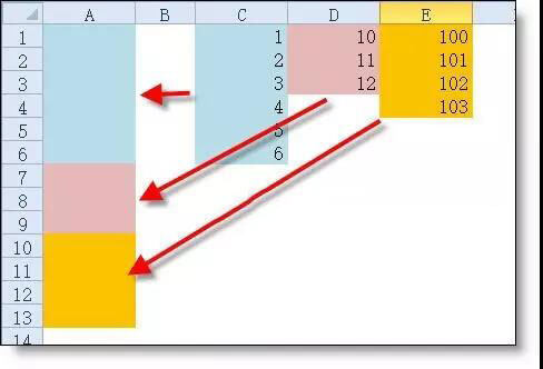 【例】下图C、D、E 三列数据,现需要按顺序粘贴到A列中。