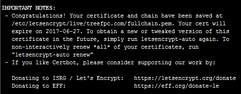执行完之后,等待执行。如果出现下面截图中的 Important Notes:Congratulations! 字样,表示证书已重新更新续期。