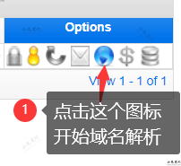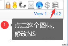 3、修改的域名后面,点击最后一个图标,开始修改NS记录。