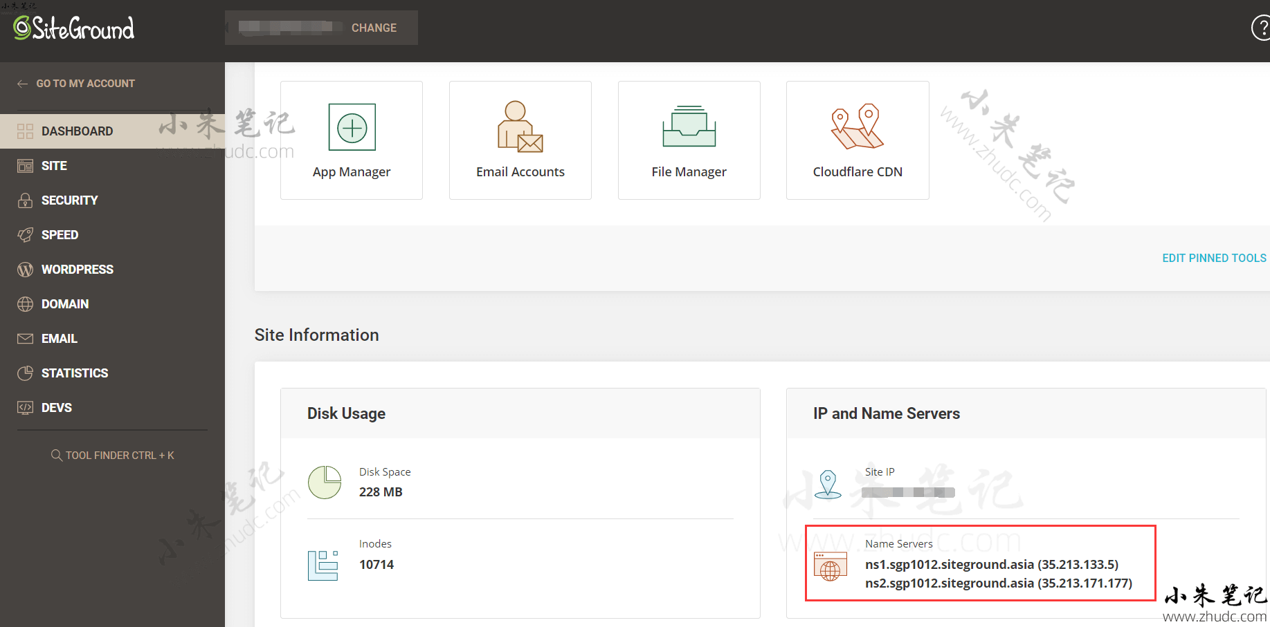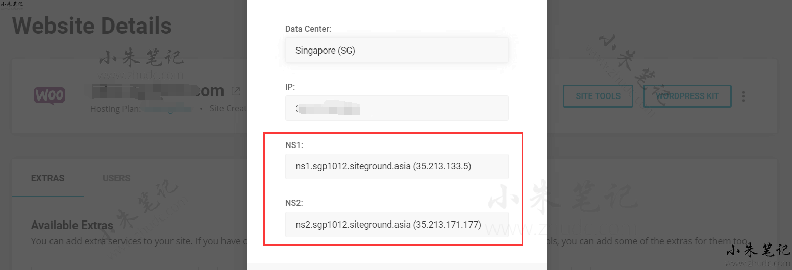 具体 NS 是多少,请看你的 siteground 后台 ns1 和 ns2。