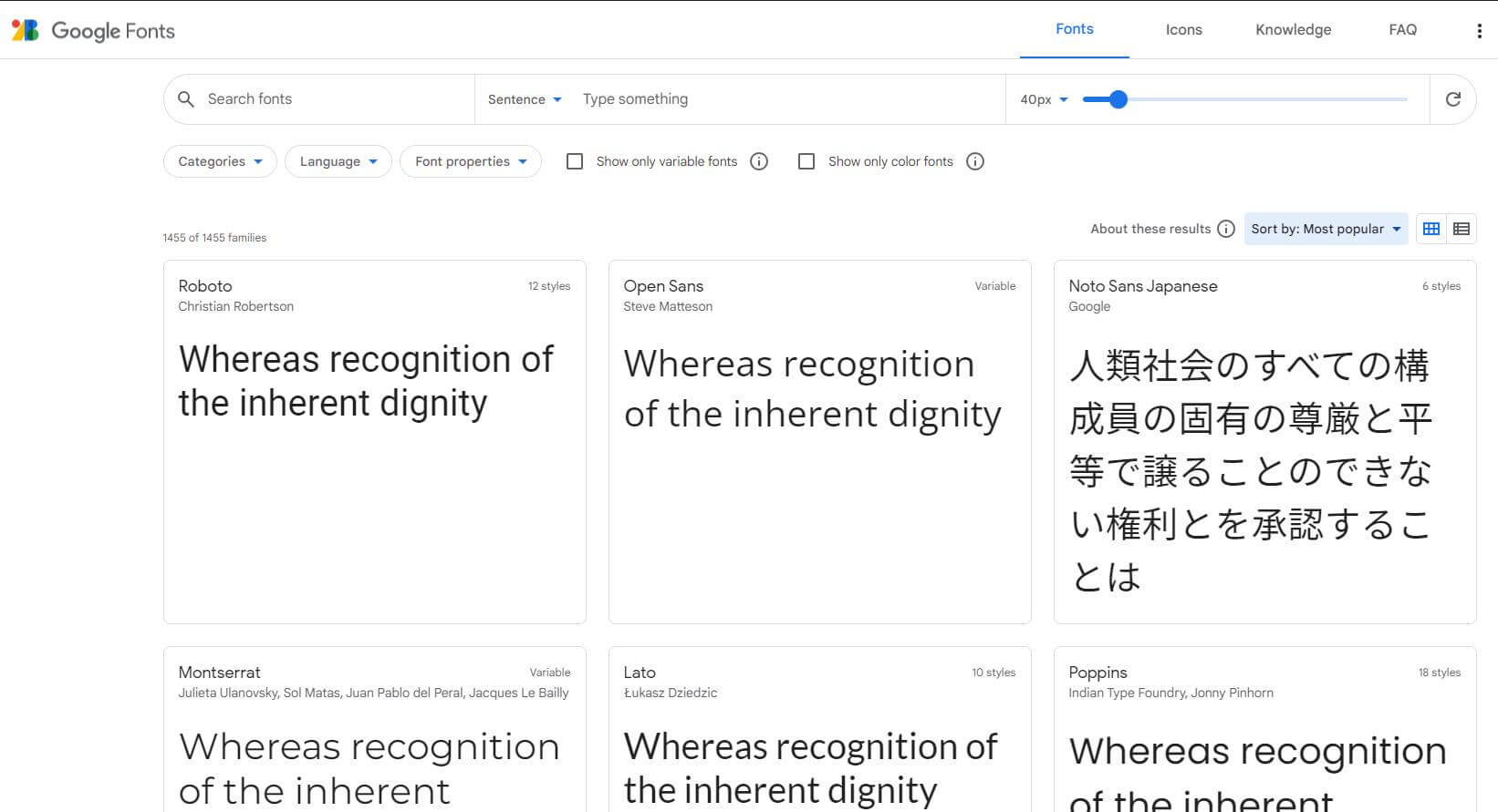 打开谷歌字体,具体浏览各字体效果:Google Fonts