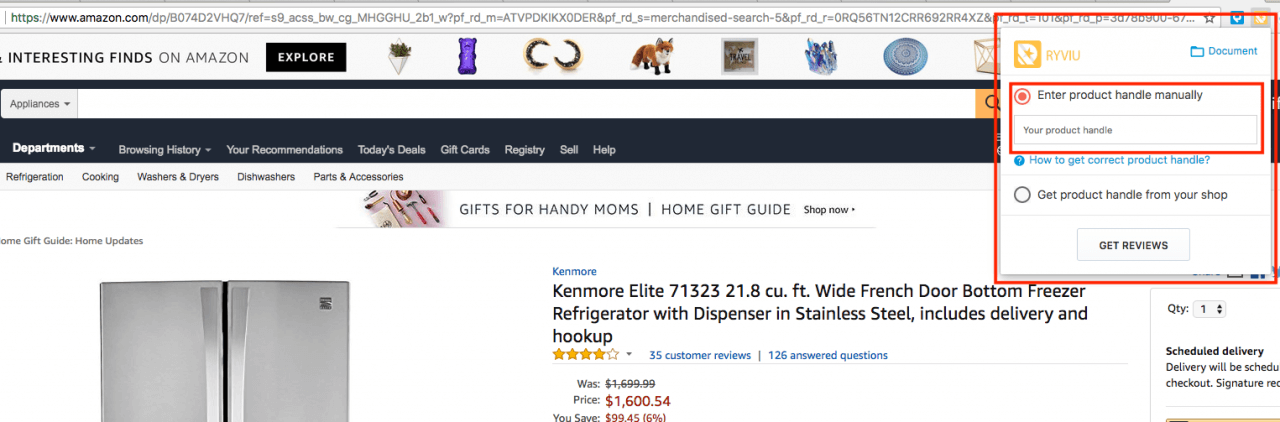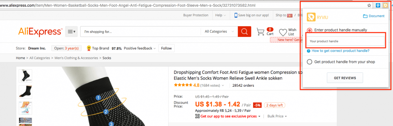 点击Ryviu Chrome扩展程序图标并输入您的产品句柄(步骤1中)。