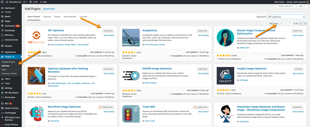 只需登录博客的仪表板,然后单击插件>添加新。 然后在右上角的搜索框中输入搜索字词。