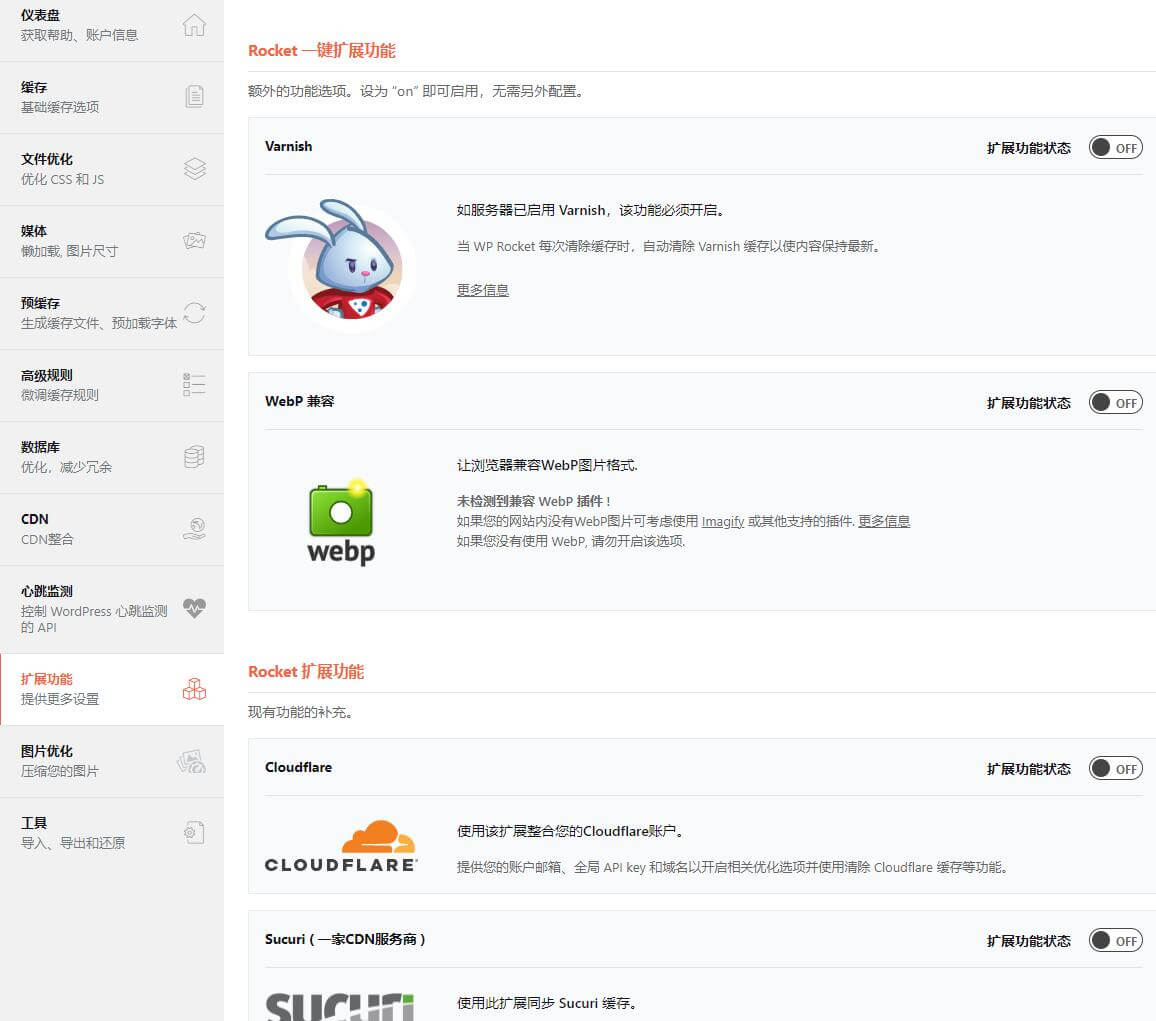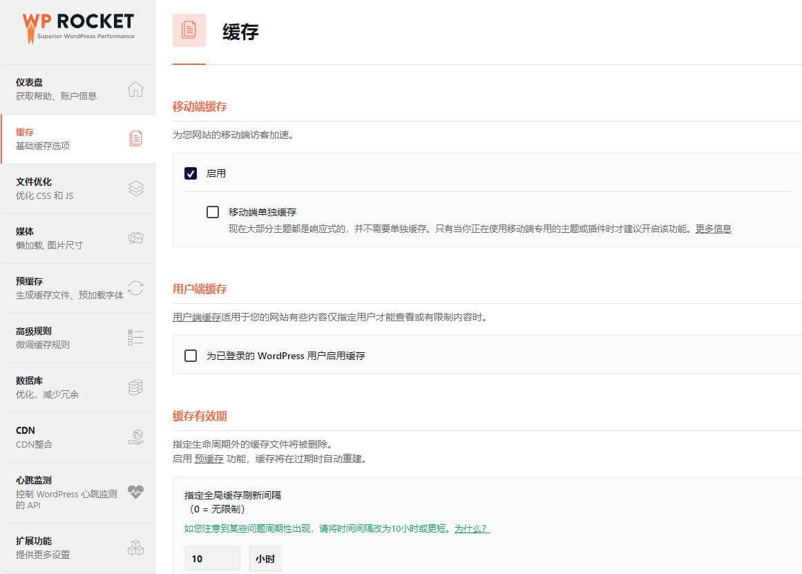 WordPress缓存插件有很多,而WP Rocket常年优秀,一直作为缓存首选。没有免费版,只能购买使用或破版。集各种功能为一体,强大又好用,网上基础设置教程有很多,百度谷歌啦。