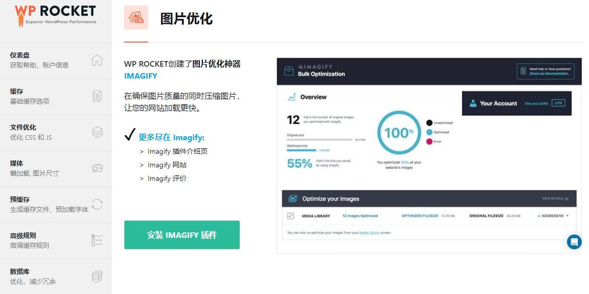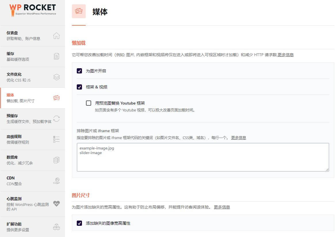 可以使用配套的wp rocket图片压缩插件,懒人插件不错的选择。