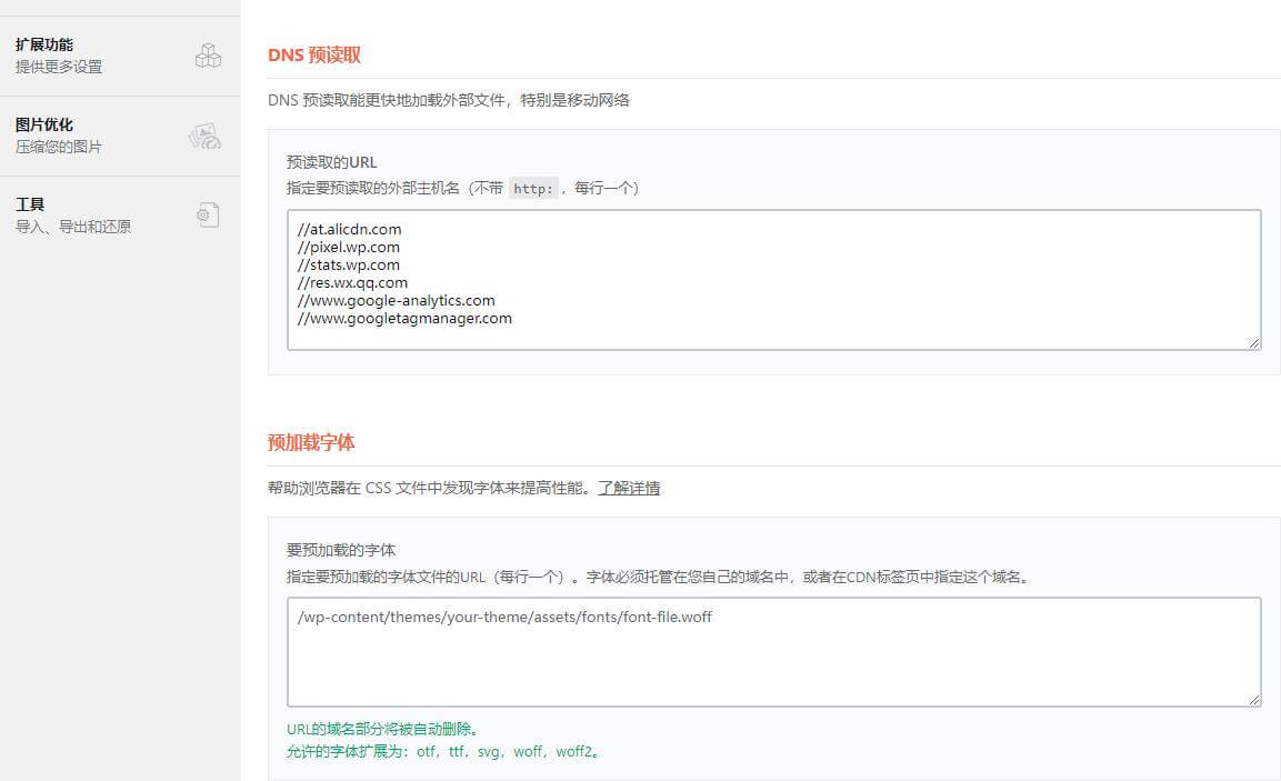 字体也一样,预加载第三方或主题字体链接都可以放上去。