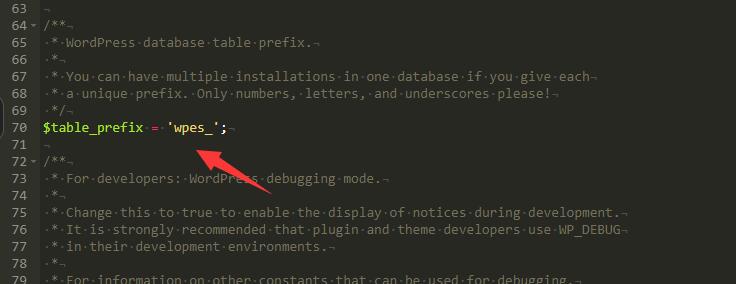 2、更改网站根目录下wp-config.php文件里面的表前缀;