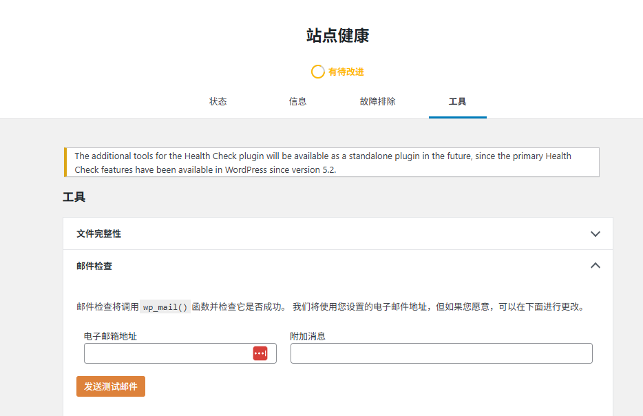 对于新手,使用健康检查与故障排除插件测试一下,看能不能收到邮件,如果收不到,就代表服务器PHP mail()函数有问题。